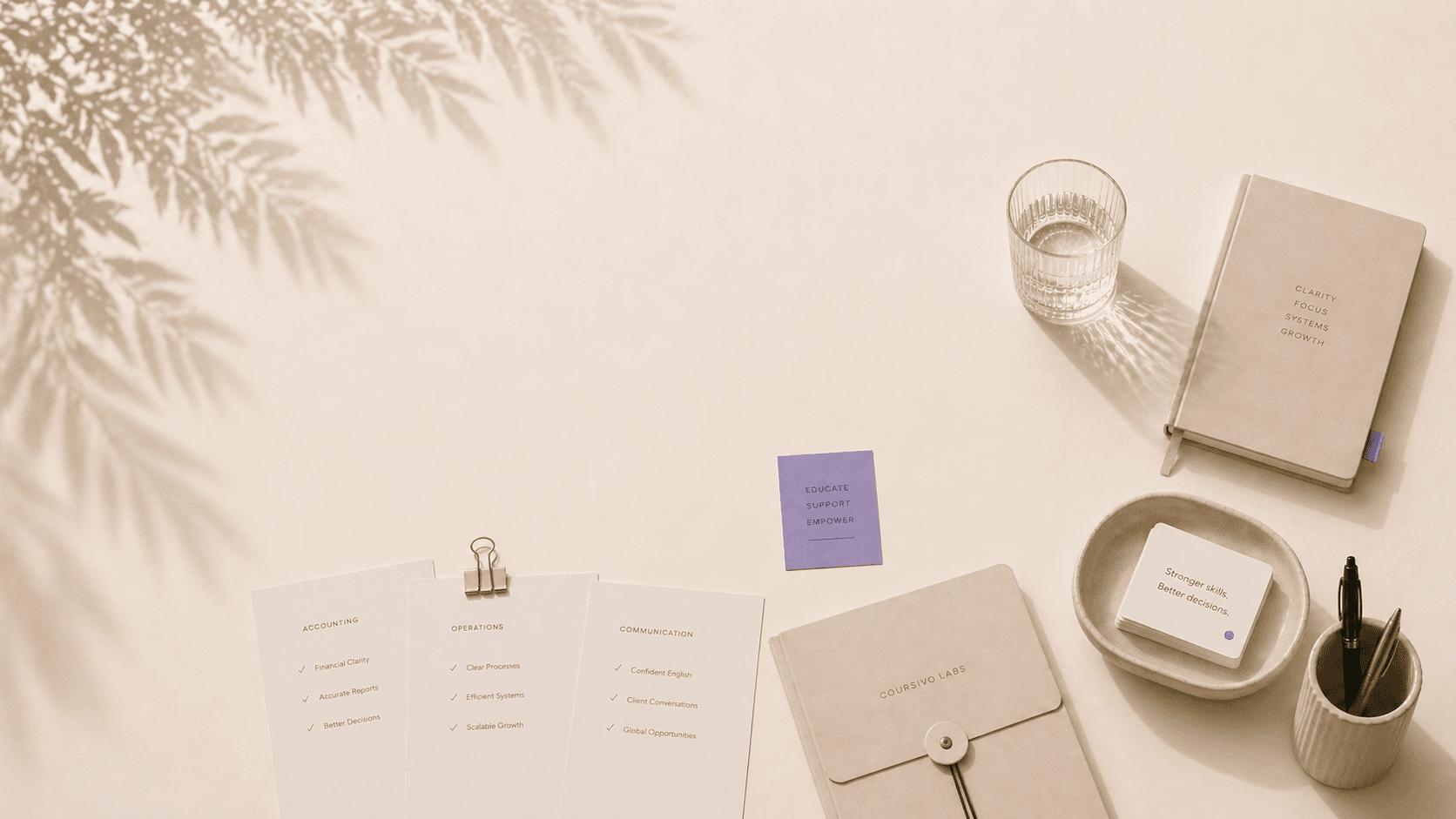 Coursivo is an education lab for people and small businesses who need real-world craft in accounting, administration, and English communication. Remote, flexible, outcomes-first, delivered through our own learning platform.